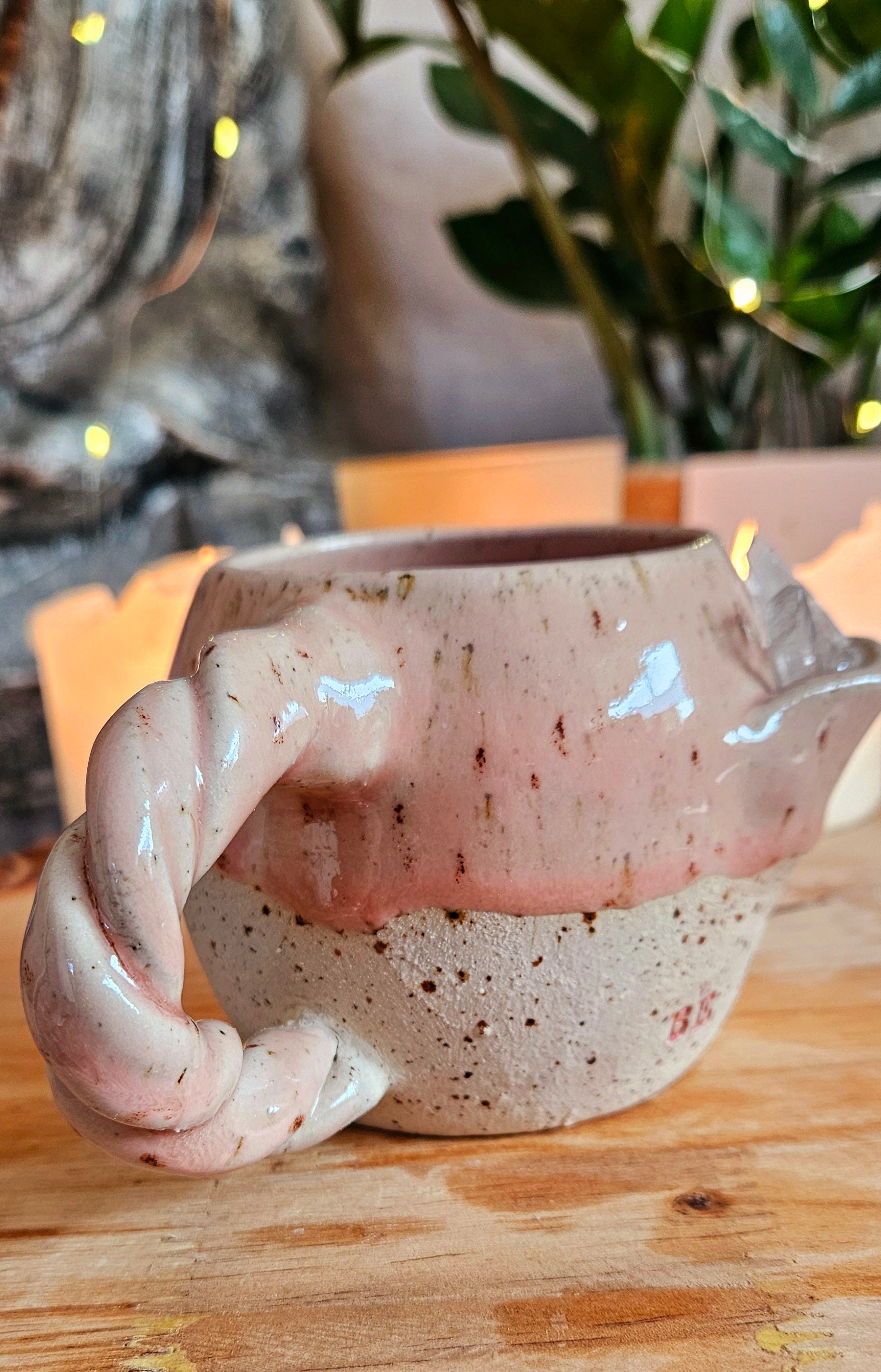 Jeder Becher und Tasse werden von mir in liebevoller Handarbeit auf der Drehscheibe gedreht, von Hand glasiert und anschließend im Brennofen gebrannt. Ich stelle überwiegend Spirituelle Keramik her. In meinen hoch Meditativen Arbeitsprozessen, fließen Weltthemen mit mir und durch mich hindurch. Diese macht sie geradezu ganz besonders und zu einem absoluten kraftvollen Schatz.