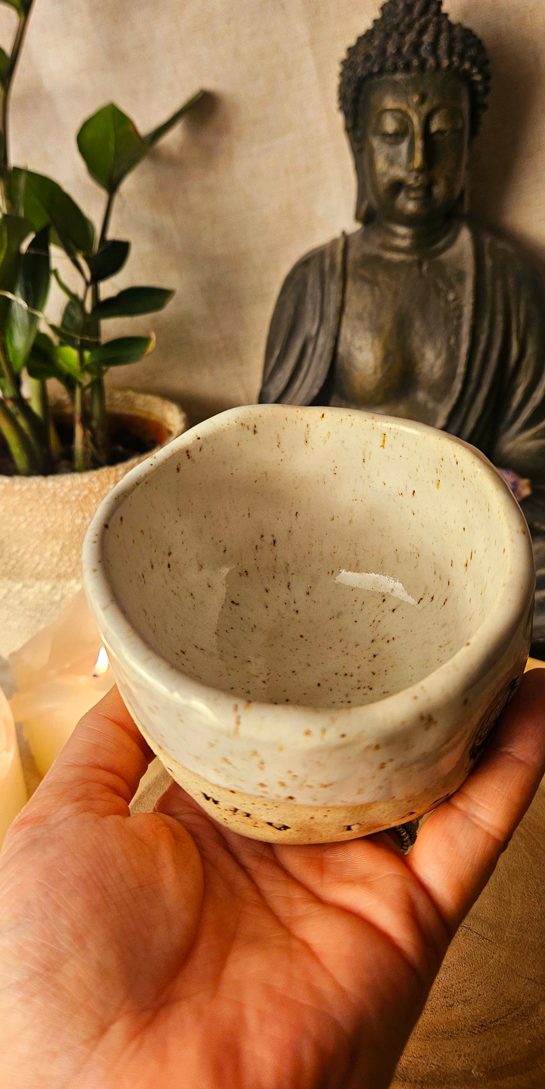 Jeder Becher und Tasse werden von mir in liebevoller Handarbeit auf der Drehscheibe gedreht, von Hand glasiert und anschließend im Brennofen gebrannt. Ich stelle überwiegend Spirituelle Keramik her. In meinen hoch Meditativen Arbeitsprozessen, fließen Weltthemen mit mir und durch mich hindurch. Diese macht sie geradezu ganz besonders und zu einem absoluten kraftvollen Schatz.