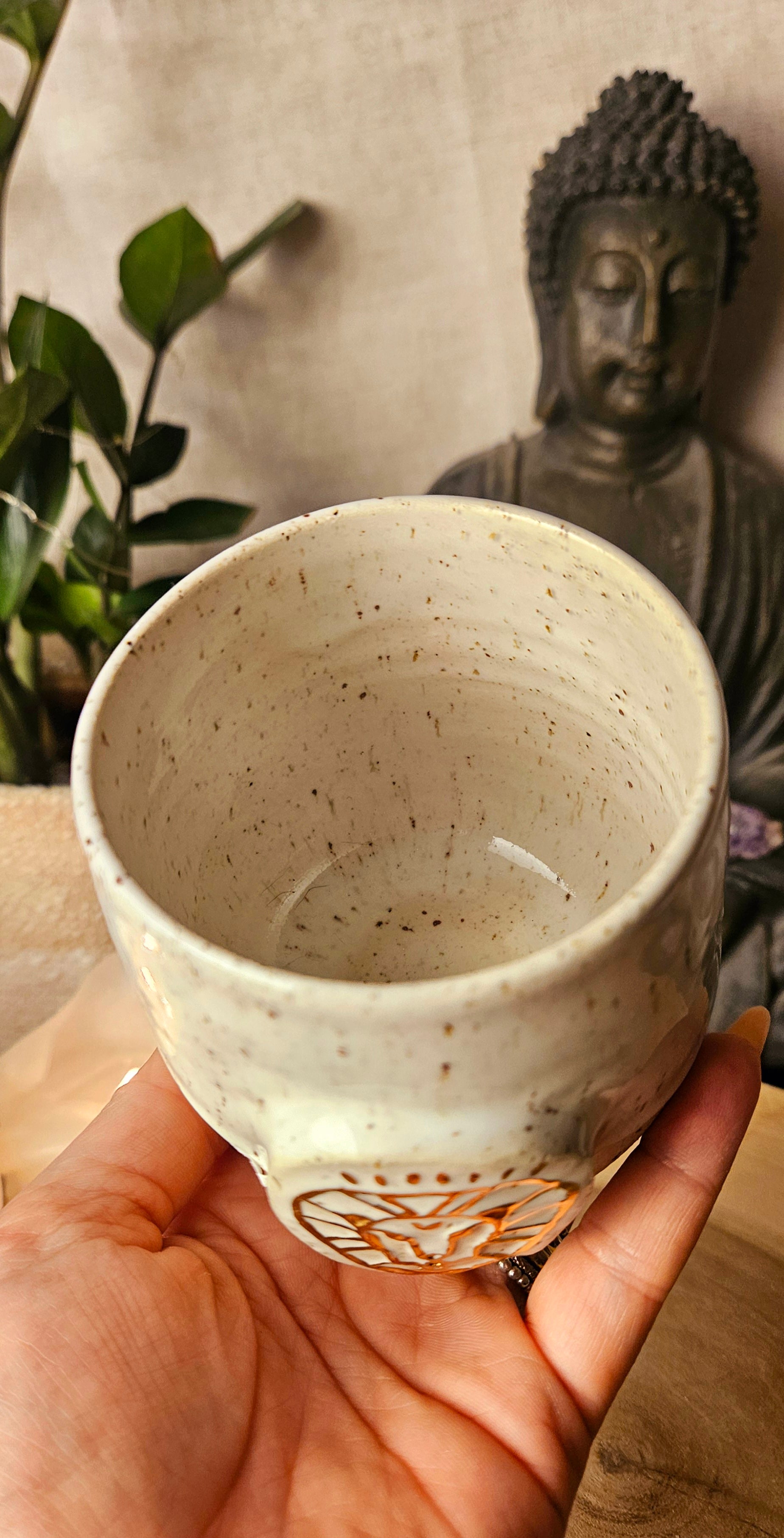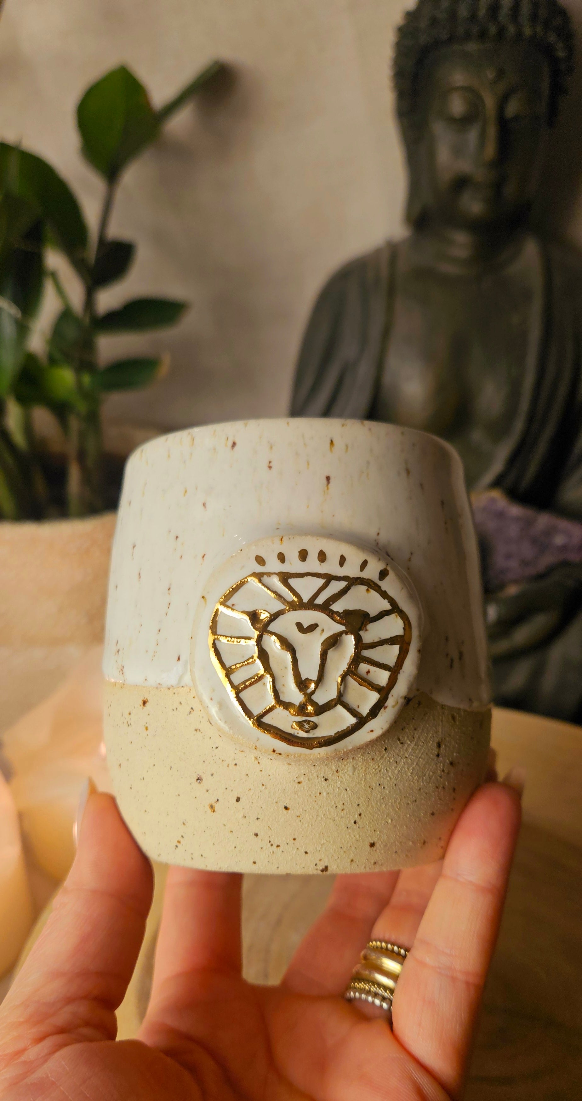 Jeder Becher und Tasse werden von mir in liebevoller Handarbeit auf der Drehscheibe gedreht, von Hand glasiert und anschließend im Brennofen gebrannt. Ich stelle überwiegend Spirituelle Keramik her. In meinen hoch Meditativen Arbeitsprozessen, fließen Weltthemen mit mir und durch mich hindurch. Diese macht sie geradezu ganz besonders und zu einem absoluten kraftvollen Schatz.