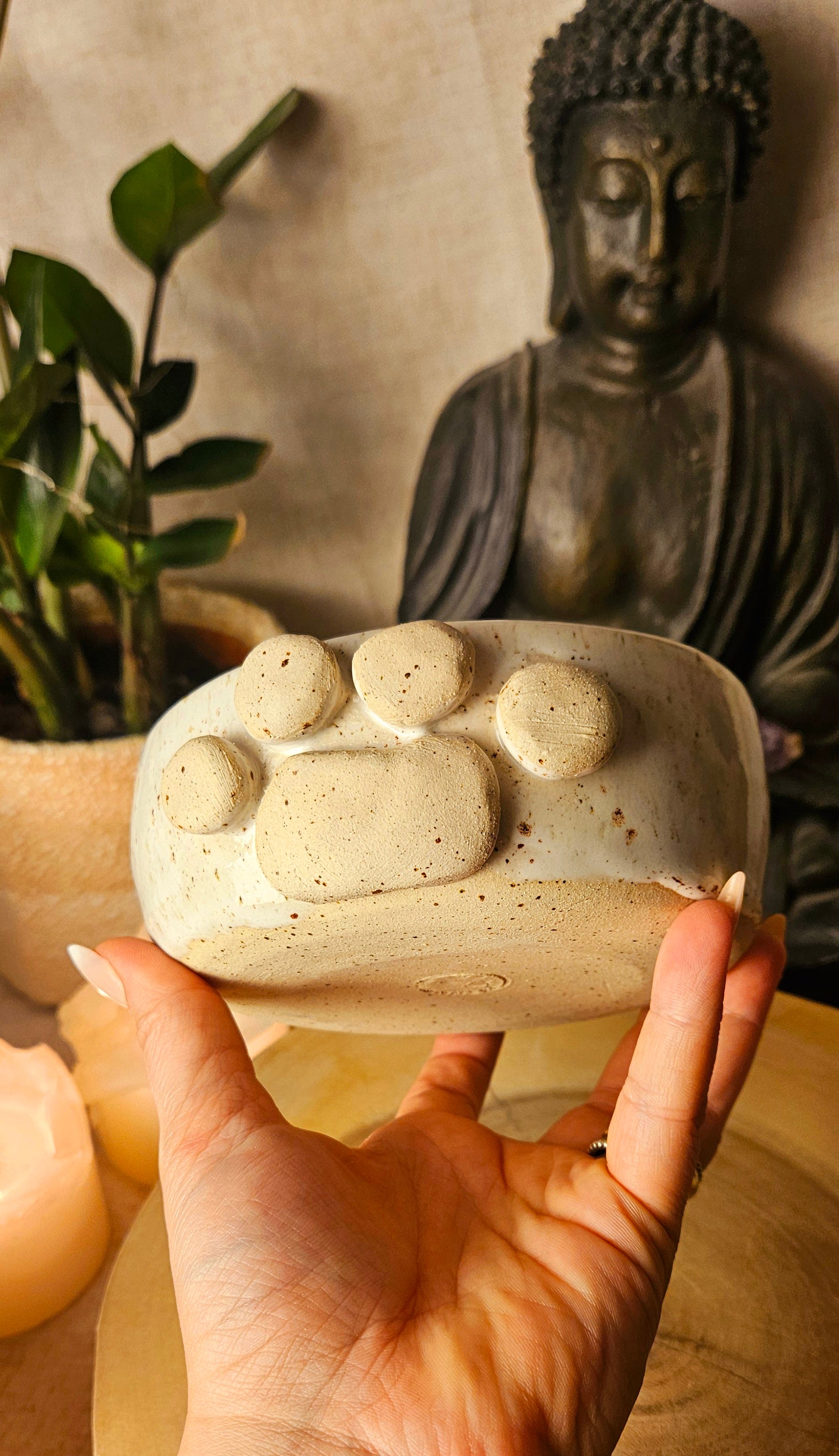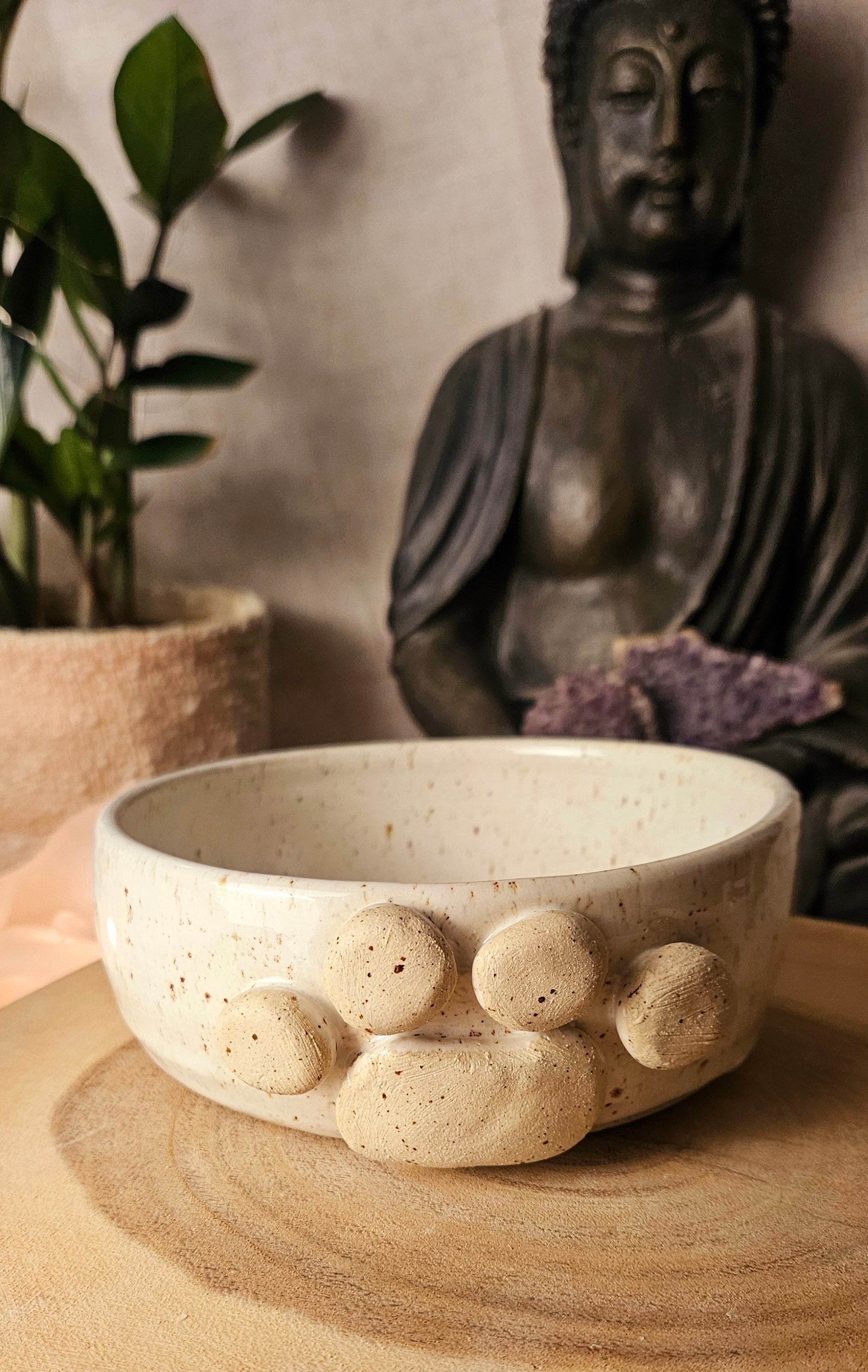 Jeder Becher und Tasse werden von mir in liebevoller Handarbeit auf der Drehscheibe gedreht, von Hand glasiert und anschließend im Brennofen gebrannt. Ich stelle überwiegend Spirituelle Keramik her. In meinen hoch Meditativen Arbeitsprozessen, fließen Weltthemen mit mir und durch mich hindurch. Diese macht sie geradezu ganz besonders und zu einem absoluten kraftvollen Schatz.