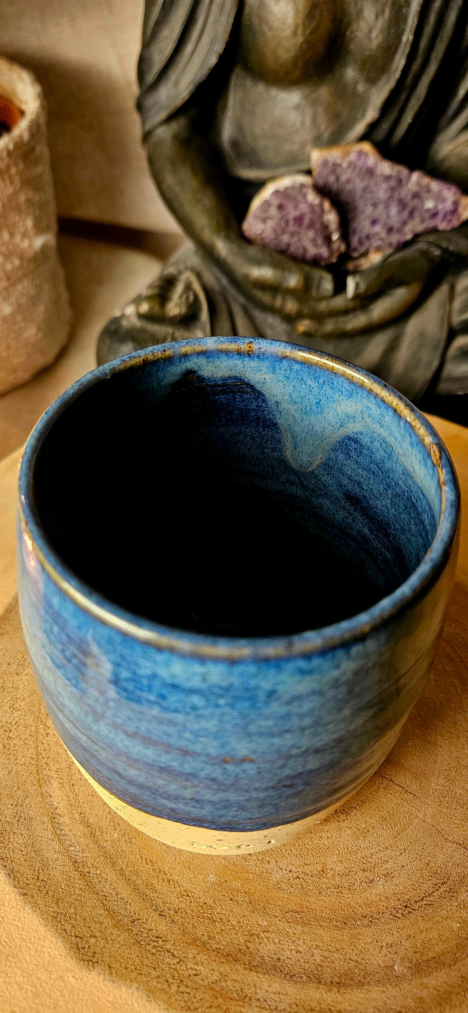 Jeder Becher und Tasse werden von mir in liebevoller Handarbeit auf der Drehscheibe gedreht, von Hand glasiert und anschließend im Brennofen gebrannt. Ich stelle überwiegend Spirituelle Keramik her. In meinen hoch Meditativen Arbeitsprozessen, fließen Weltthemen mit mir und durch mich hindurch. Diese macht sie geradezu ganz besonders und zu einem absoluten kraftvollen Schatz.