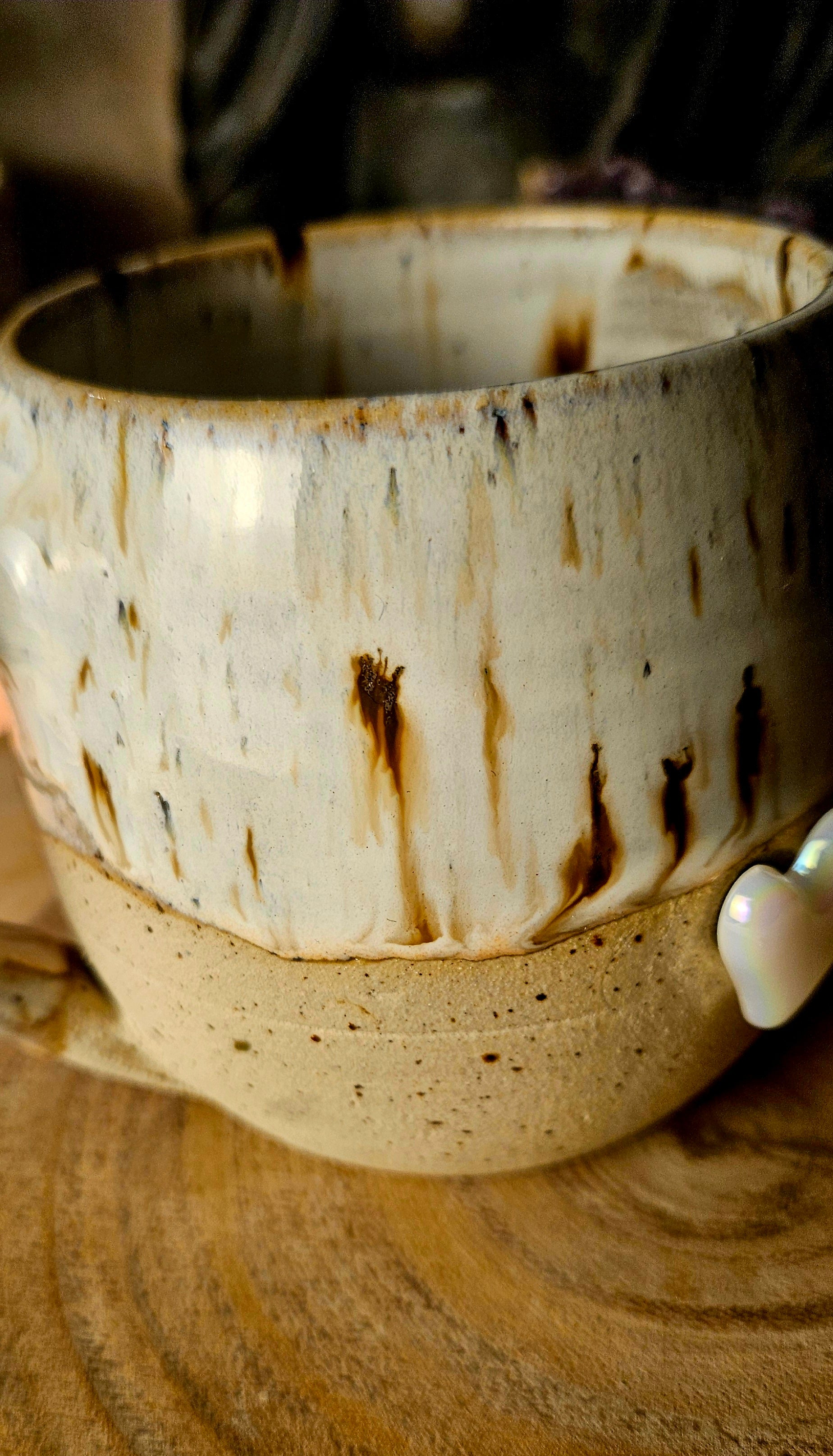 Jeder Becher und Tasse werden von mir in liebevoller Handarbeit auf der Drehscheibe gedreht, von Hand glasiert und anschließend im Brennofen gebrannt. Ich stelle überwiegend Spirituelle Keramik her. In meinen hoch Meditativen Arbeitsprozessen, fließen Weltthemen mit mir und durch mich hindurch. Diese macht sie geradezu ganz besonders und zu einem absoluten kraftvollen Schatz.
