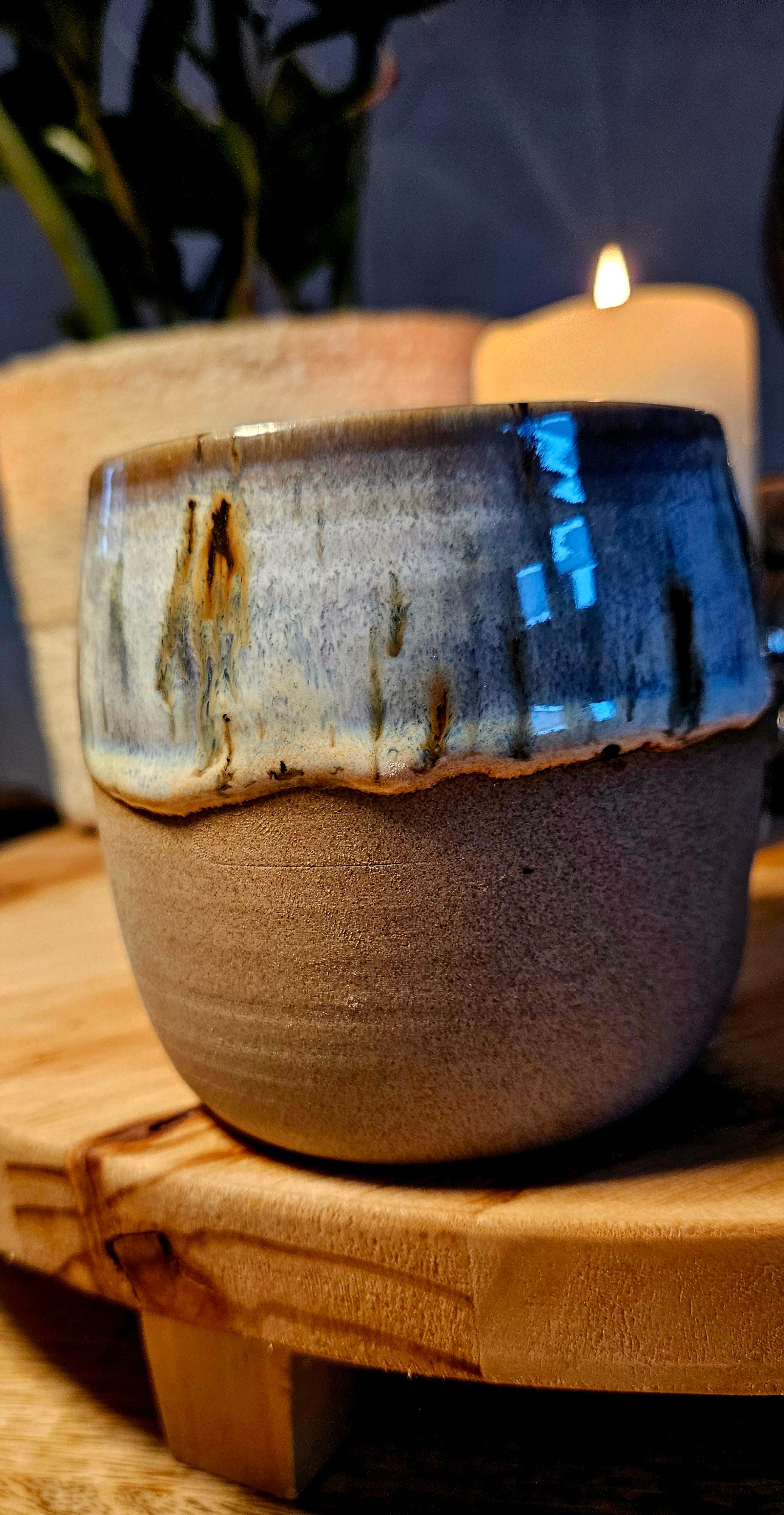 Jeder Becher und Tasse werden von mir in liebevoller Handarbeit auf der Drehscheibe gedreht, von Hand glasiert und anschließend im Brennofen gebrannt. Ich stelle überwiegend Spirituelle Keramik her. In meinen hoch Meditativen Arbeitsprozessen, fließen Weltthemen mit mir und durch mich hindurch. Diese macht sie geradezu ganz besonders und zu einem absoluten kraftvollen Schatz.