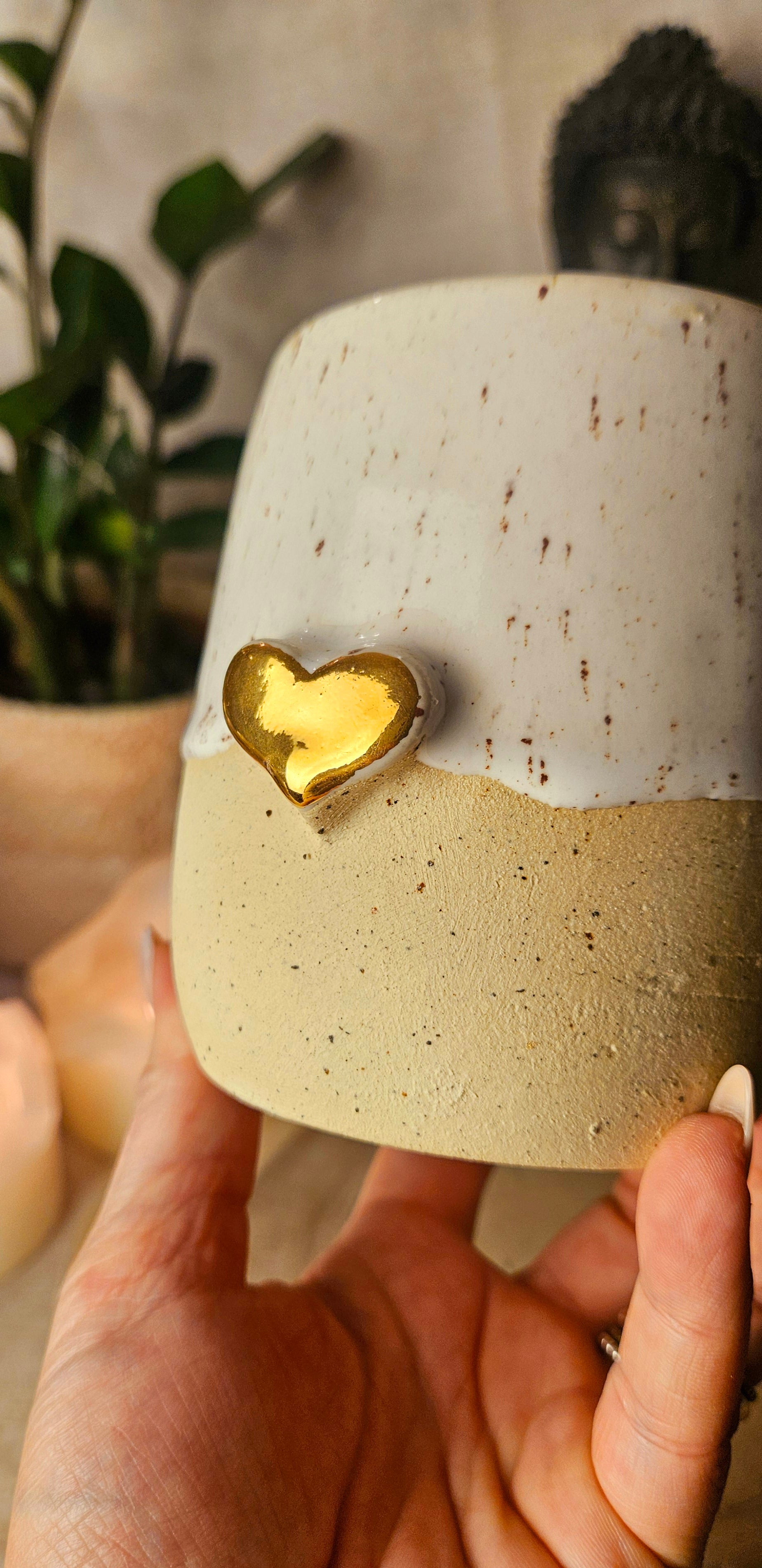 Jeder Becher und Tasse werden von mir in liebevoller Handarbeit auf der Drehscheibe gedreht, von Hand glasiert und anschließend im Brennofen gebrannt. Ich stelle überwiegend Spirituelle Keramik her. In meinen hoch Meditativen Arbeitsprozessen, fließen Weltthemen mit mir und durch mich hindurch. Diese macht sie geradezu ganz besonders und zu einem absoluten kraftvollen Schatz.