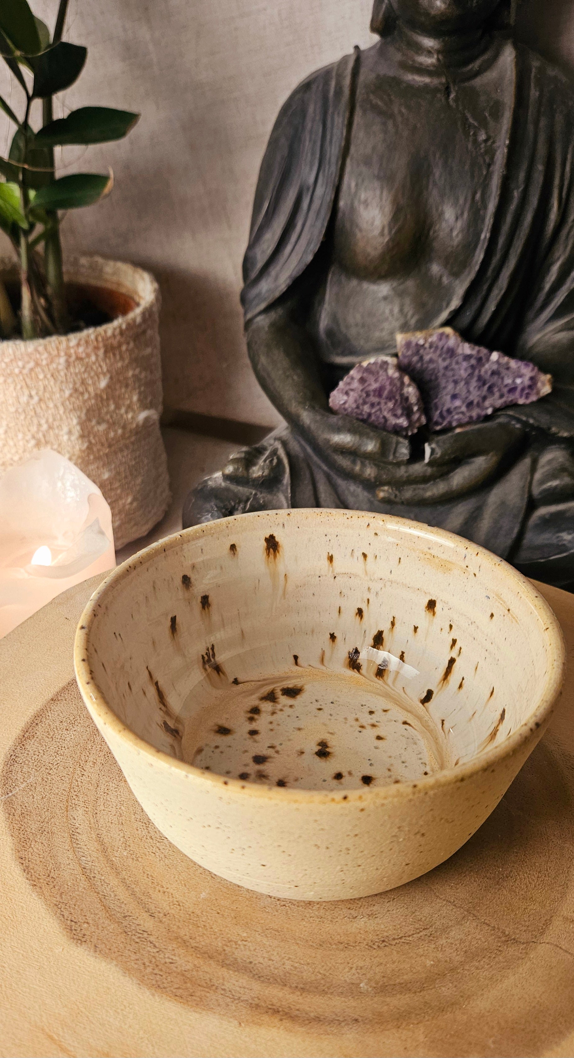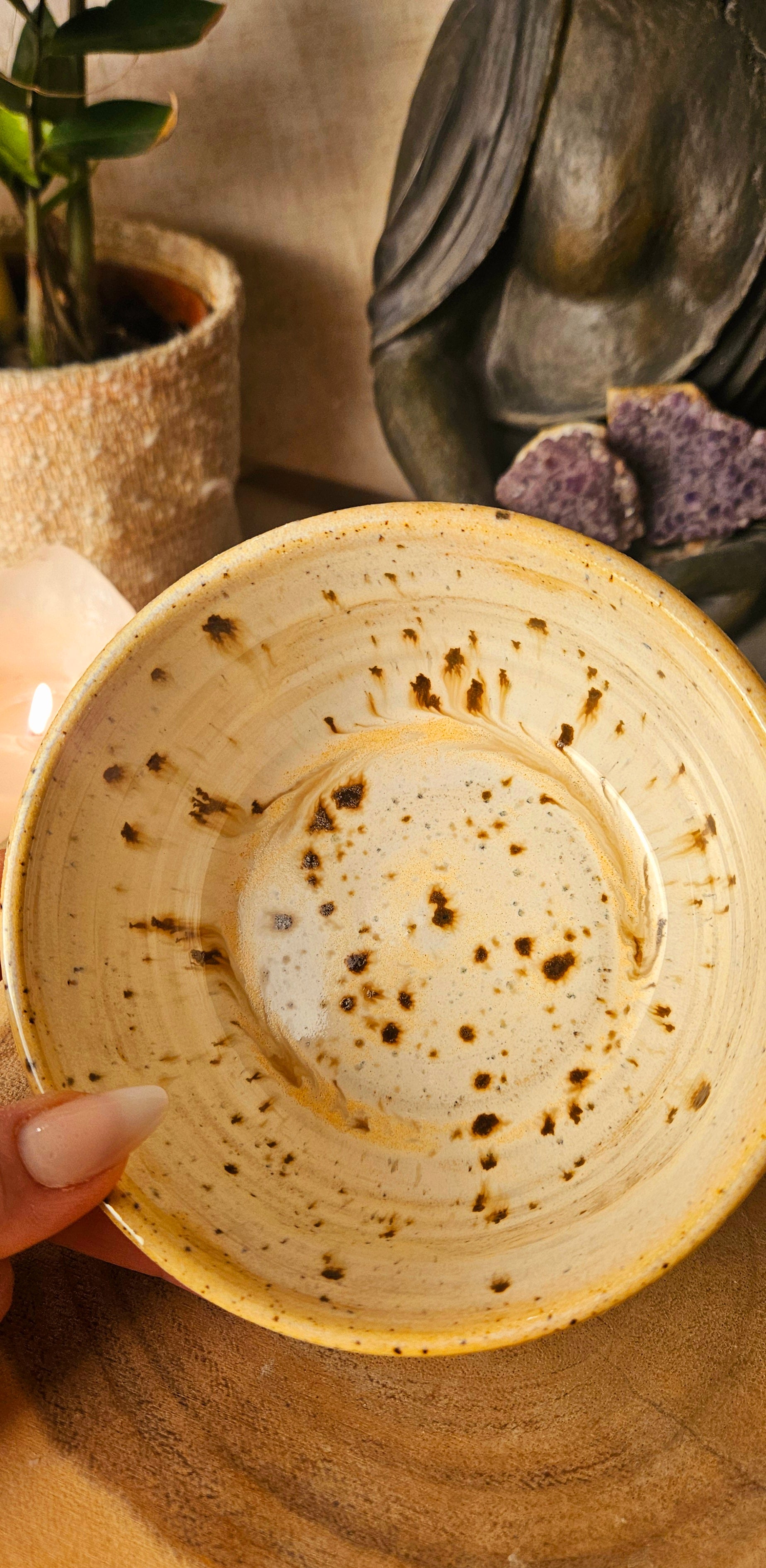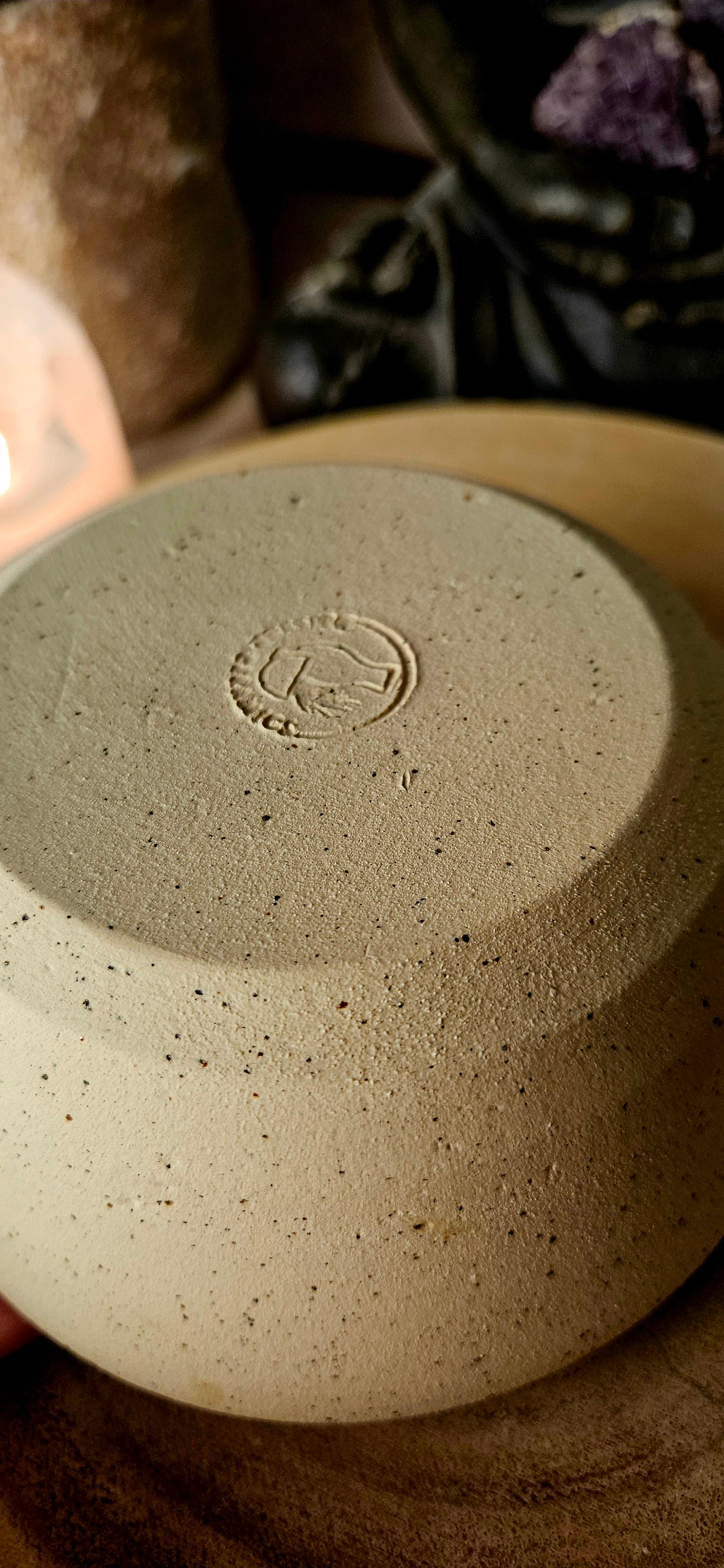 Jeder Becher und Tasse werden von mir in liebevoller Handarbeit auf der Drehscheibe gedreht, von Hand glasiert und anschließend im Brennofen gebrannt. Ich stelle überwiegend Spirituelle Keramik her. In meinen hoch Meditativen Arbeitsprozessen, fließen Weltthemen mit mir und durch mich hindurch. Diese macht sie geradezu ganz besonders und zu einem absoluten kraftvollen Schatz.
