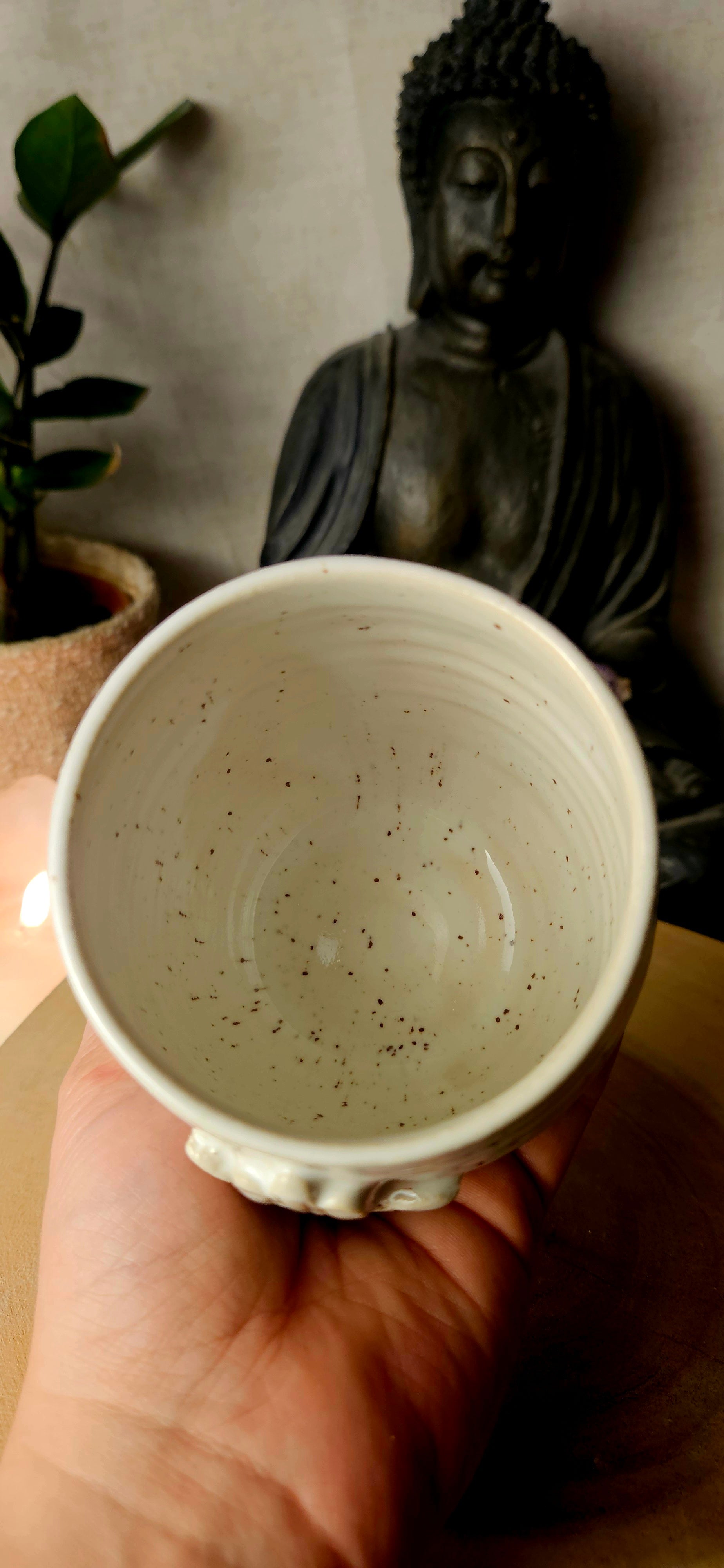 Jeder Becher und Tasse werden von mir in liebevoller Handarbeit auf der Drehscheibe gedreht, von Hand glasiert und anschließend im Brennofen gebrannt. Ich stelle überwiegend Spirituelle Keramik her. In meinen hoch Meditativen Arbeitsprozessen, fließen Weltthemen mit mir und durch mich hindurch. Diese macht sie geradezu ganz besonders und zu einem absoluten kraftvollen Schatz.