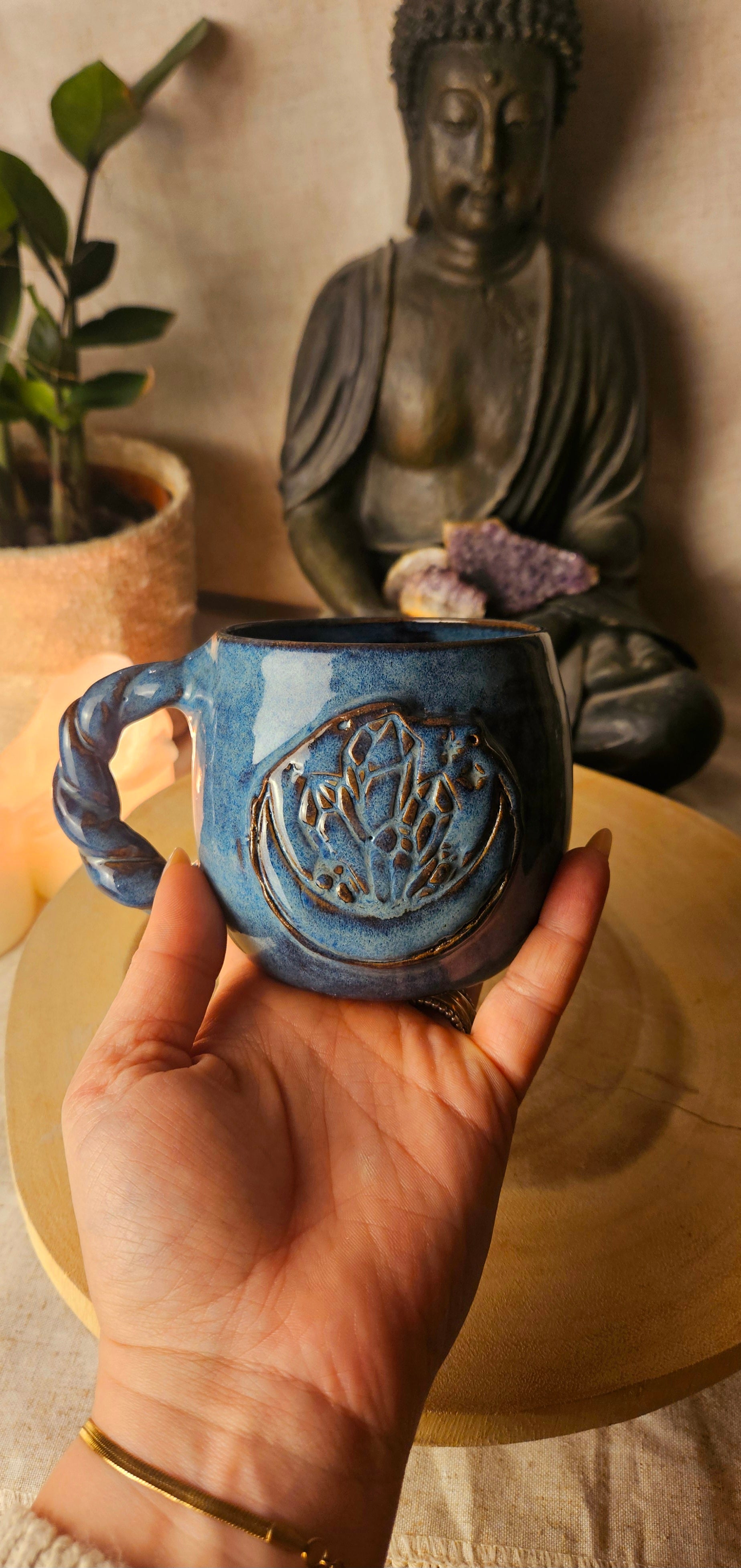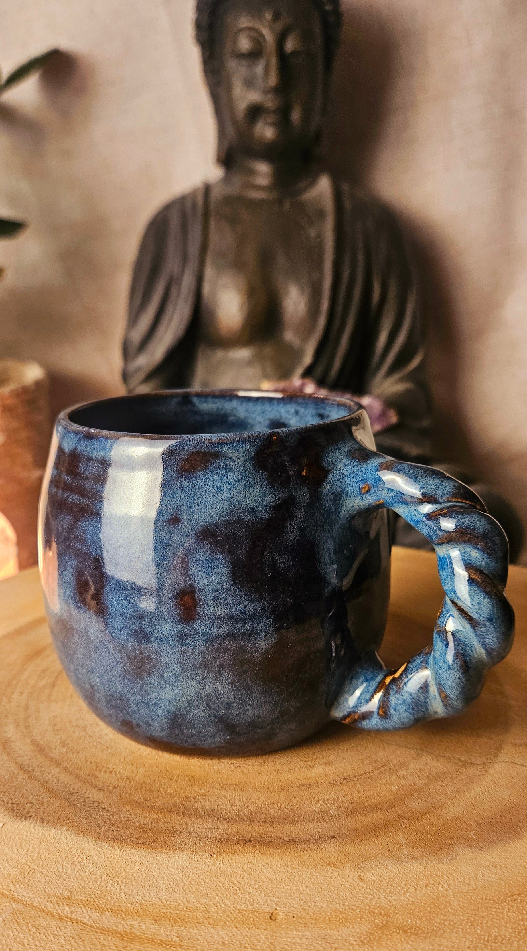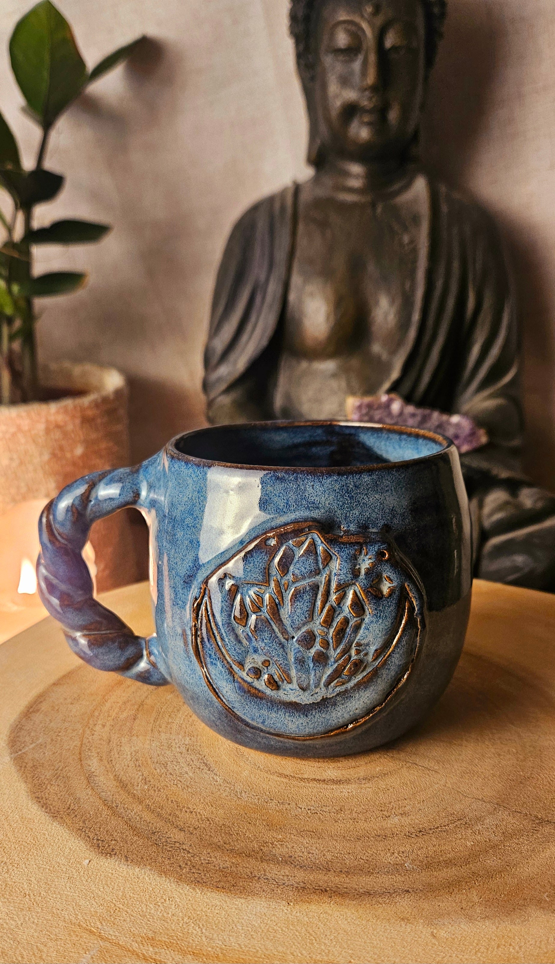 Jeder Becher und Tasse werden von mir in liebevoller Handarbeit auf der Drehscheibe gedreht, von Hand glasiert und anschließend im Brennofen gebrannt. Ich stelle überwiegend Spirituelle Keramik her. In meinen hoch Meditativen Arbeitsprozessen, fließen Weltthemen mit mir und durch mich hindurch. Diese macht sie geradezu ganz besonders und zu einem absoluten kraftvollen Schatz.